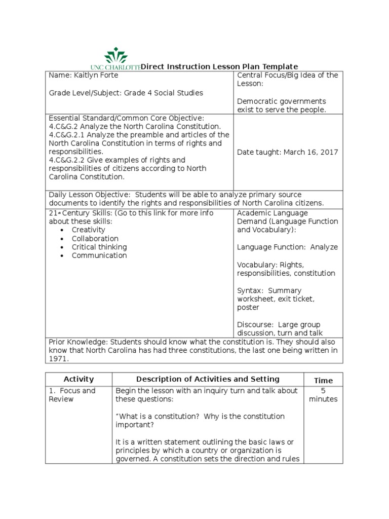 Imb Direct Instruction Lesson Plan Template Social Studies PDF