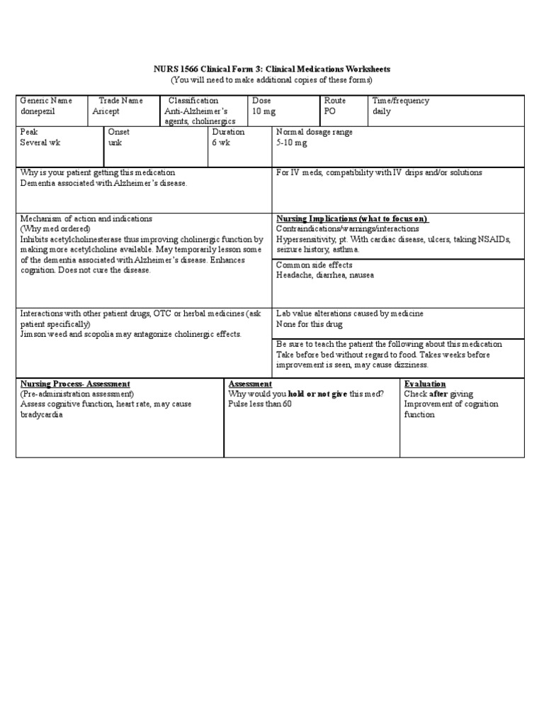 Donepezil Medication Template - You have been started on a new medication today, called donepezil. A glimpse into donepezil a. Medication margareth de oliveira lima. Action of donepezil (aricept) elevates acetylcholine concentrations; View medication template donepezil.pdf from nur 2459 at rasmussen college. Client education evaluation of medication effectiveness. Document ati template donepezil.pdf, subject nursing, from texas wesleyan university, length: Medication lucas venters student name_ donepezil. For more information, see section 1. View donepezil.pdf from nursing health ass at sacred heart university. Medication lucas venters student name_ donepezil. This lead to modest improvement of cognitive function. For more information, see section 1. View donepezil medication template.pdf from nursing prn009 at charlotte technical center. A detailed guide to this alzheimer's medication i. A glimpse into donepezil a. You should begin taking a 5 mg tablet once daily. Donepezil sandoz is used to treat mild, moderate and severe alzheimer’s disease, also called dementia of the alzheimer’s type. You have been started on a new medication today, called donepezil. X donepezil improves the symptoms but does not slow the progression of alzheimer's disease. Action of donepezil (aricept) elevates acetylcholine concentrations; Medication margareth de oliveira lima. For more information, see section 1. View donepezil medication template.pdf from nursing prn009 at charlotte technical center. Upload your study docs or become a member. A detailed guide to this alzheimer's medication i. X donepezil improves the symptoms but does not slow the progression of alzheimer's disease. The role of cholinesterase inhibitors c. After one month, you should increase to 10 mg once daily. Medication lucas venters student name_ donepezil. Medication lucas venters student name_ donepezil. You should begin taking a 5 mg tablet once daily. A glimpse into donepezil a. View donepezil medication template.pdf from nursing prn009 at charlotte technical center. A detailed guide to this alzheimer's medication i. For more information, see section 1. Document ati template donepezil.pdf, subject nursing, from texas wesleyan university, length: This lead to modest improvement of cognitive function. Student name jennifer mathy_____ medication donepezil (aricept)_____ review module category class cholinergic. A glimpse into donepezil a. Medication lucas venters student name_ donepezil. For more information, see section 1. The role of cholinesterase inhibitors c. View medication template donepezil.pdf from nur 2459 at rasmussen college. You should begin taking a 5 mg tablet once daily. Medication lucas venters student name_ donepezil. For more information, see section 1. Student name jennifer mathy_____ medication donepezil (aricept)_____ review module category class cholinergic. Upload your study docs or become a member. You should begin taking a 5 mg tablet once daily. For more information, see section 1. The role of cholinesterase inhibitors c. View donepezil.pdf from nursing health ass at sacred heart university. This lead to modest improvement of cognitive function. View medication template donepezil.pdf from nur 2459 at rasmussen college. A detailed guide to this alzheimer's medication i. Medication margareth de oliveira lima. View donepezil.pdf from nursing health ass at sacred heart university. Action of donepezil (aricept) elevates acetylcholine concentrations; Medication lucas venters student name_ donepezil. The role of cholinesterase inhibitors c. After one month, you should increase to 10 mg once daily. X donepezil improves the symptoms but does not slow the progression of alzheimer's disease. For more information, see section 1. Upload your study docs or become a member. You have been started on a new medication today, called donepezil. Why am i using apo. Upload your study docs or become a member. A glimpse into donepezil a. X donepezil improves the symptoms but does not slow the progression of alzheimer's disease. Medication lucas venters student name_ donepezil. View donepezil.pdf from nursing health ass at sacred heart university. You should begin taking a 5 mg tablet once daily. Client education evaluation of medication effectiveness. Document ati template donepezil.pdf, subject nursing, from texas wesleyan university, length: Donepezil sandoz is used to treat mild, moderate and severe alzheimer’s disease, also called dementia of the alzheimer’s type. Why am i using apo. After one month, you should increase to 10 mg once daily. For more information, see section 1. View medication template donepezil.pdf from nur 2459 at rasmussen college. Action of donepezil (aricept) elevates acetylcholine concentrations; X donepezil improves the symptoms but does not slow the progression of alzheimer's disease. A detailed guide to this alzheimer's medication i. A glimpse into donepezil a. View donepezil medication template.pdf from nursing prn009 at charlotte technical center. Upload your study docs or become a member.Donepezil Ati Medication Template
