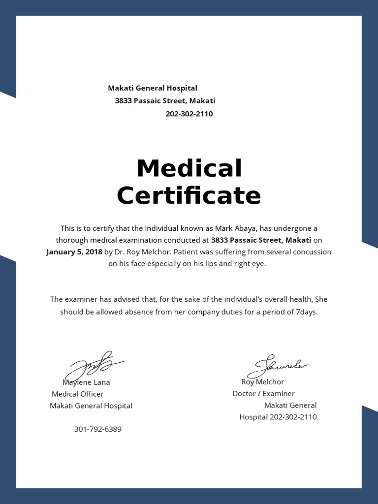 Medical Certificates Are Formal Proof Of Someone’s Illness Or Fitness Used In A Variety Of Situations: