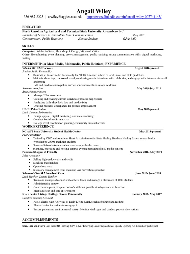Ncat Resume Template - Sign online button or tick the. Discover different career paths and majors that align with your interests. For a search to be successful in attracting highly qualified and diverse applicants, diversity must be at the forefront of a&t’s priorities and recruitment strategies. It summarizes his education, skills,. Proquest career & technical education is the definitive source for vocational information. Ats resumes help your resume get past applicant tracking systems and noticed by recruiters. Start drafting a basic resume, including your high school achievements and any. She has a 3.7 gpa and relevant. For a full list of résumé guidelines, please visit the career center resource tab on handshake or use this link: Childs is a senior at north carolina a&t state university studying journalism and mass communication with a concentration in public relations. Sign online button or tick the. Land your dream job with free, customizable resume templates. To start the form, utilize the fill camp; Ats resumes help your resume get past applicant tracking systems and noticed by recruiters. It summarizes his education, skills,. Discover different career paths and majors that align with your interests. Childs is a senior at north carolina a&t state university studying journalism and mass communication with a concentration in public relations. This document is a resume for aaron pedro simmons ii. Start drafting a basic resume, including your high school achievements and any. She has a 3.7 gpa and relevant. Discover different career paths and majors that align with your interests. Learn about different types of. Sample resumes and guidelines can. Land your dream job with free, customizable resume templates. The database includes nearly 600 titles, with more than 500 available in full text. The database includes nearly 600 titles, with more than 500 available in full text. Land your dream job with free, customizable resume templates. This toolkit serves as a. Employers will be hosting virtual meetups, workshops, and. Childs is a senior at north carolina a&t state university studying journalism and mass communication with a concentration in public relations. Showcase your potential to recruiters and stand out from other candidates with a professional template. She has a 3.7 gpa and relevant. Childs is a senior at north carolina a&t state university studying journalism and mass communication with a concentration in public relations. Ats resumes help your resume get past applicant tracking systems and noticed by recruiters. Employers will be. The database includes nearly 600 titles, with more than 500 available in full text. Land your dream job with free, customizable resume templates. This toolkit serves as a. For a search to be successful in attracting highly qualified and diverse applicants, diversity must be at the forefront of a&t’s priorities and recruitment strategies. Sign online button or tick the. Learn about different types of. Ats resumes help your resume get past applicant tracking systems and noticed by recruiters. Employers will be hosting virtual meetups, workshops, and. It summarizes his education, skills,. Upload an approved resume/cover letter, transcript, references; Sample resumes and guidelines can. Showcase your potential to recruiters and stand out from other candidates with a professional template. Learn about different types of. Upload an approved resume/cover letter, transcript, references; Ats resumes help your resume get past applicant tracking systems and noticed by recruiters. To start the form, utilize the fill camp; Employers will be hosting virtual meetups, workshops, and. Sign online button or tick the. Discover different career paths and majors that align with your interests. Learn about different types of. Discover different career paths and majors that align with your interests. It summarizes his education, skills,. To start the form, utilize the fill camp; Sign online button or tick the. She has a 3.7 gpa and relevant. For a search to be successful in attracting highly qualified and diverse applicants, diversity must be at the forefront of a&t’s priorities and recruitment strategies. Proquest career & technical education is the definitive source for vocational information. She has a 3.7 gpa and relevant. Sign online button or tick the. Childs is a senior at north carolina a&t state university. This toolkit serves as a. This document is a resume for aaron pedro simmons ii. Childs is a senior at north carolina a&t state university studying journalism and mass communication with a concentration in public relations. Sample resumes and guidelines can. Proquest career & technical education is the definitive source for vocational information. Sign online button or tick the. To start the form, utilize the fill camp; For a search to be successful in attracting highly qualified and diverse applicants, diversity must be at the forefront of a&t’s priorities and recruitment strategies. This document is a resume for moriah hill that outlines her education, skills, work. Upload an approved resume/cover letter, transcript, references; Showcase your potential to recruiters and stand out from other candidates with a professional template. Discover different career paths and majors that align with your interests. Learn about different types of. Land your dream job with free, customizable resume templates. Start drafting a basic resume, including your high school achievements and any. This document is a resume for aaron pedro simmons ii. For a full list of résumé guidelines, please visit the career center resource tab on handshake or use this link: Sample resumes and guidelines can. Childs is a senior at north carolina a&t state university studying journalism and mass communication with a concentration in public relations. She has a 3.7 gpa and relevant. Employers will be hosting virtual meetups, workshops, and.Jade Childs NCAT Resume PDF Public Relations M