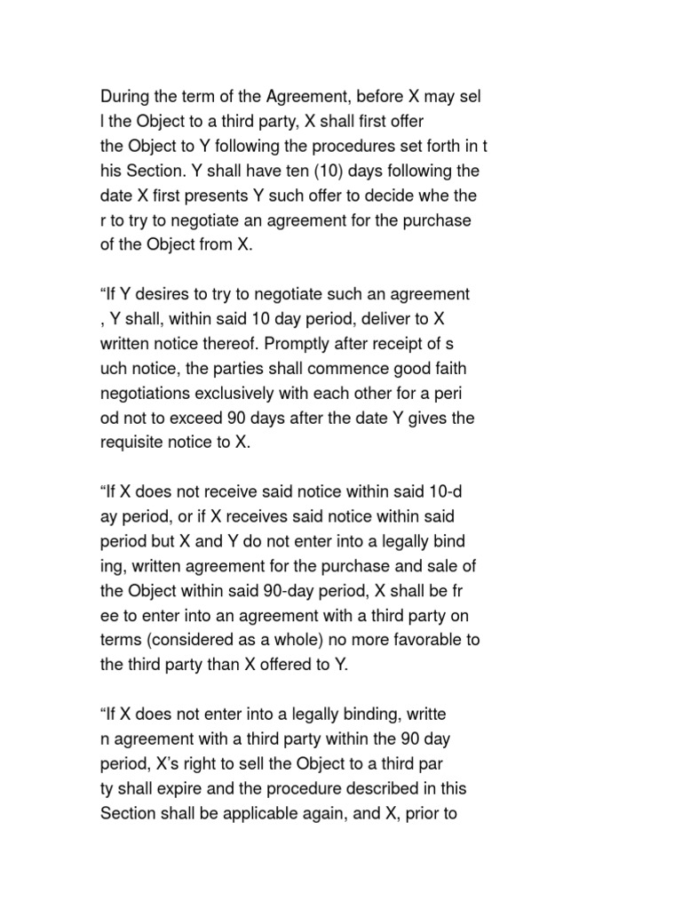 Printable Right Of First Refusal Real Estate Contract Template Example