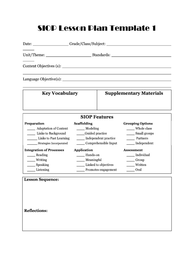 Siop Templates Are Designed To Support Teachers In Planning And Delivering Instruction That Meets The Needs Of Ells.